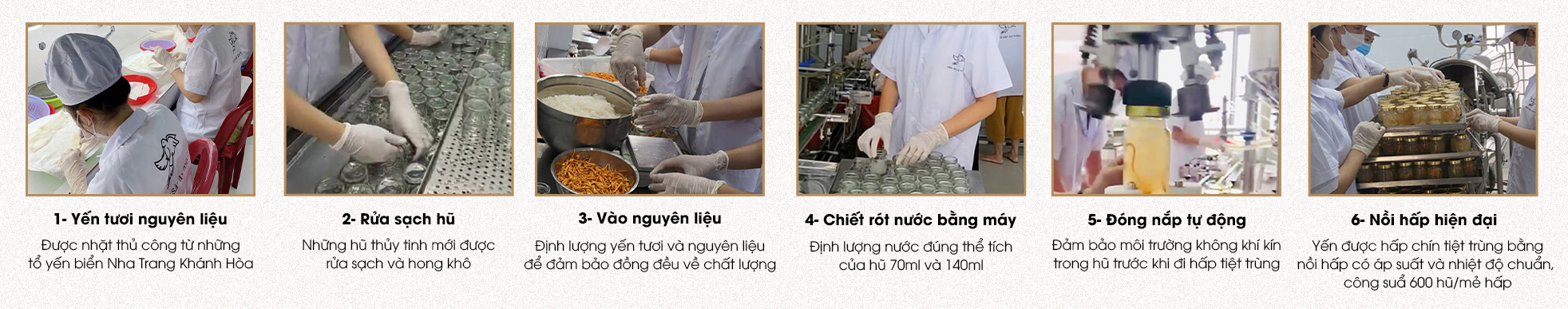 Để có được những hũ yến tươi chưng sẵn chất lượng cao, Yến Sào An Toàn đã cùng các chuyên gia nghiên cứu ra một quy trình chưng yến tươi khép kín đảm bảo an toàn vệ sinh thực phẩm và giữ trọn dinh dưỡng.