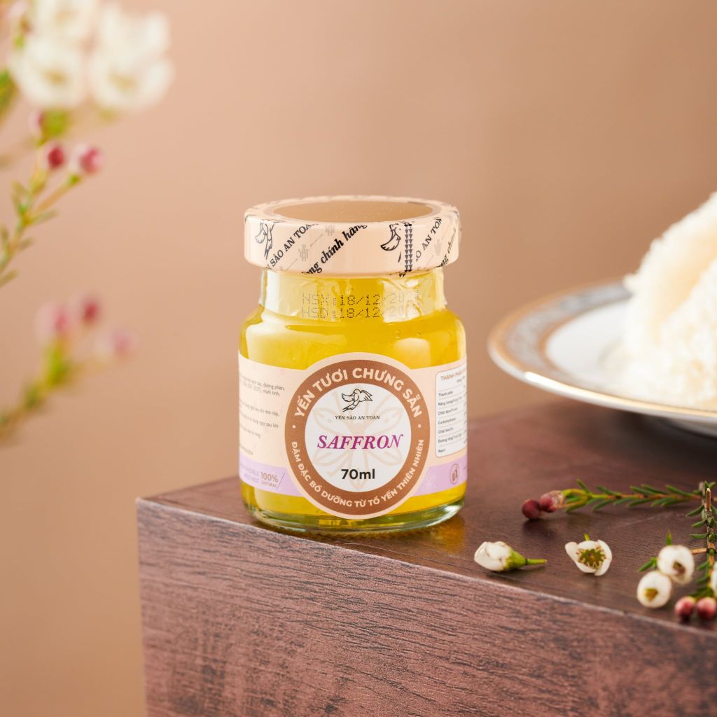 Yến tươi chưng sẵn nguyên chất với Saffron Bahraman cao cấp hũ 70ml từ Yến Sào An Toàn
