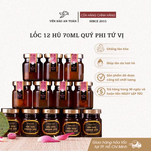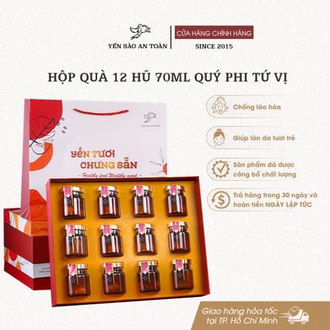 - Đóng trong hũ thủy tinh đảm bảo an toàn thực phẩm. Sản phẩm bao gồm 1 hộp quà sang trọng 12 hũ 70ml