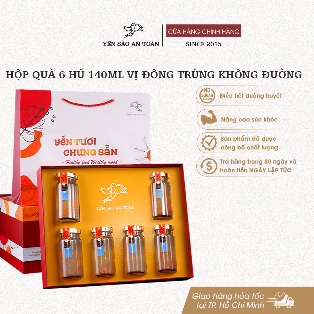 - Dùng làm quà biếu tặng người thân, đồng nghiệp hay đối tác làm ăn. Bạn có thể tham khảo thêm sản phẩm hộp quà yến tươi chưng sẵn vị Đông Trùng Hạ Thảo Không Đường tại đây nhé