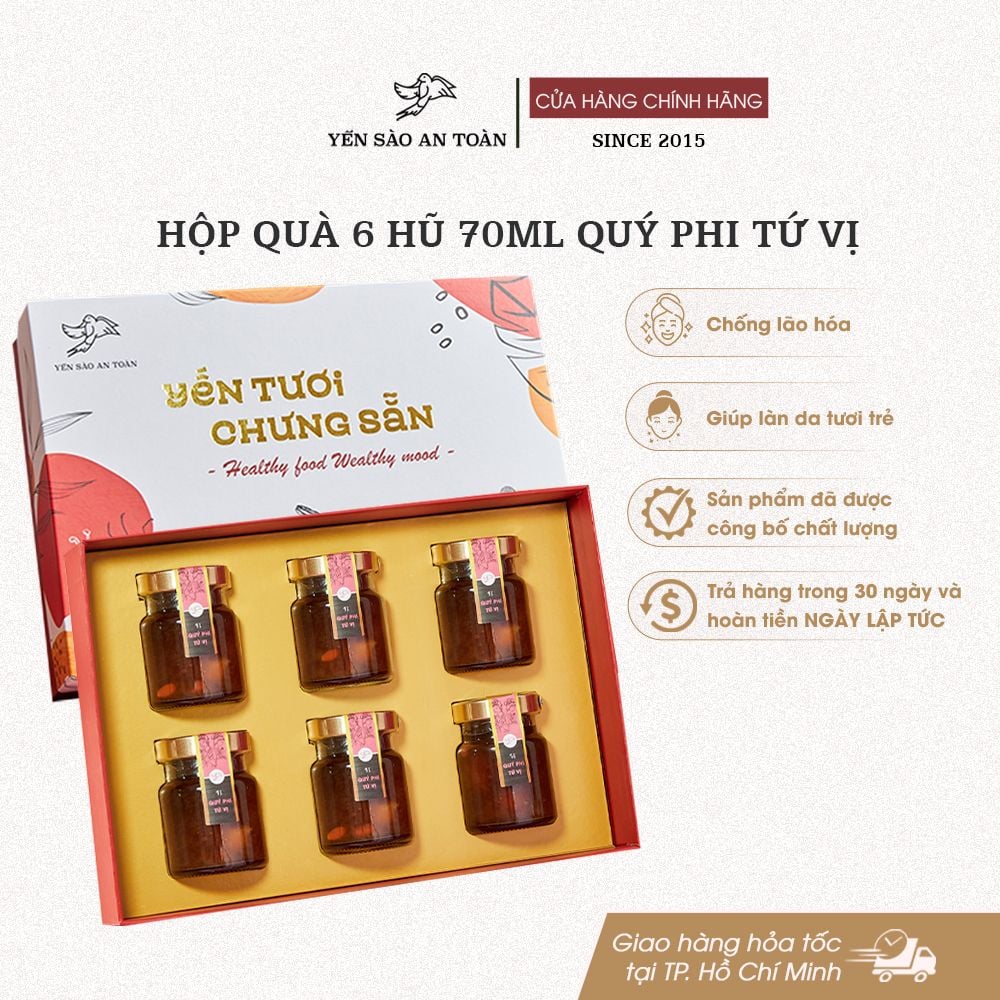 - Đóng trong hũ thủy tinh đảm bảo an toàn thực phẩm. Sản phẩm bao gồm 1 hộp quà sang trọng 6 hũ 70ml