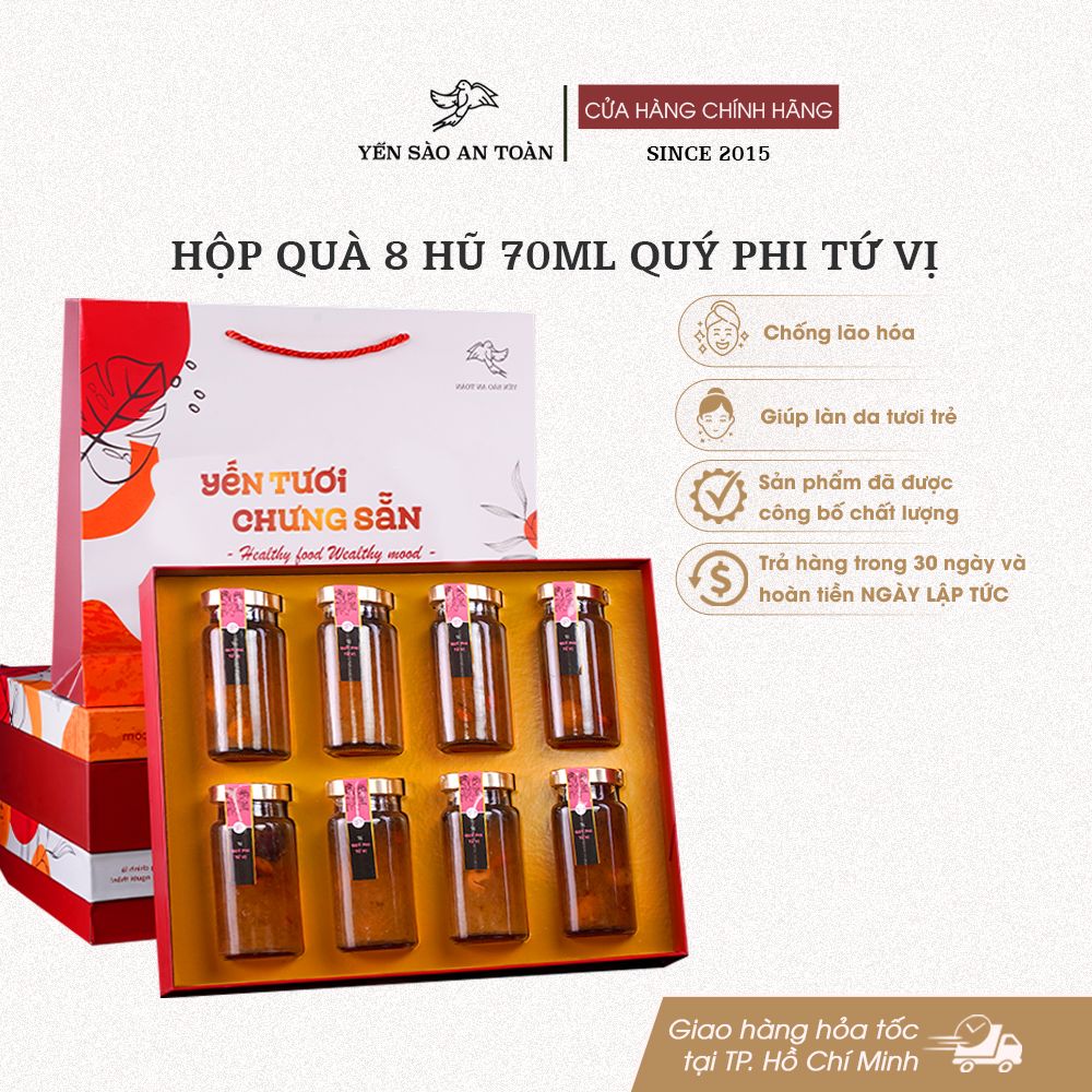 - Đóng trong hũ thủy tinh đảm bảo an toàn thực phẩm. Sản phẩm bao gồm 1 hộp quà sang trọng 8 hũ 140ml