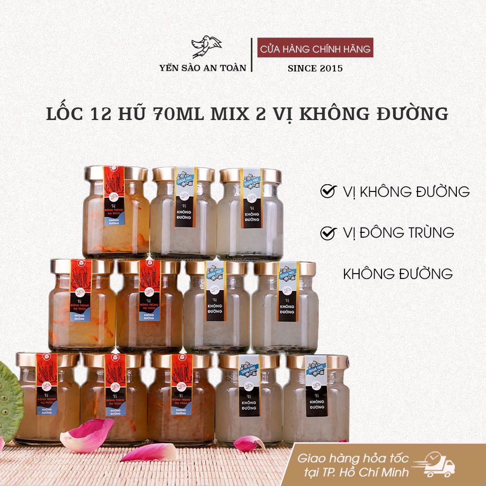 1. Lốc 12 hũ 70ml 2 vị Không Đường bao gồm: