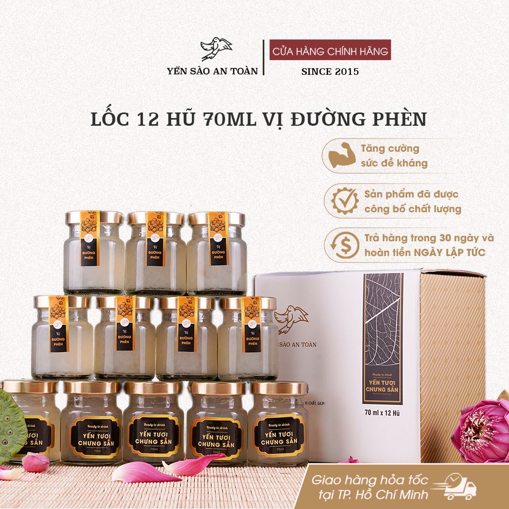 - Đóng trong hũ thủy tinh đảm bảo an toàn thực phẩm. Sản phẩm bao gồm 1 lốc 12 hũ 70ml